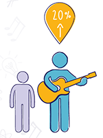 Research shows that formal music education contributes to cognitive development. Elementary school students in higher quality music education programs saw a 20% improvement in standardized tests of English and math.*