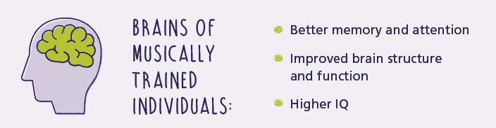 Comprehensive musical training benefits both brain structure and brain function. Just like well-exercised muscles protect the bones and joints, reduce blood pressure and increase energy levels, music education produces bigger, better-functioning brains—a benefit to people of any age.