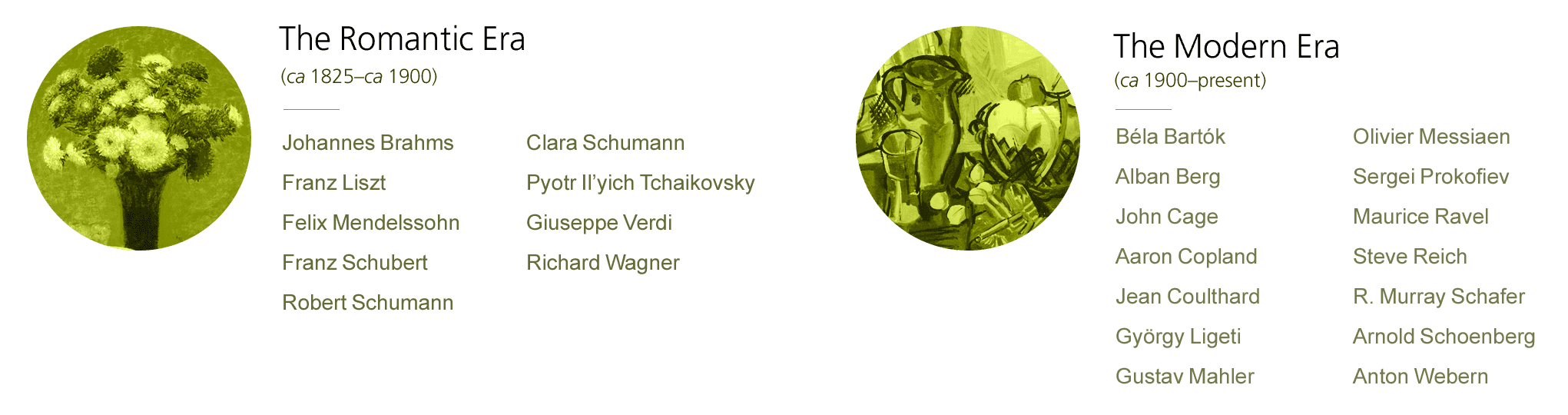 Go on an in-depth exploration of the composers and masterworks that shaped the Romantic and Modern eras.